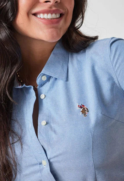 Us Polo Blusa Oxford Manga Corta Celeste Classic Fit