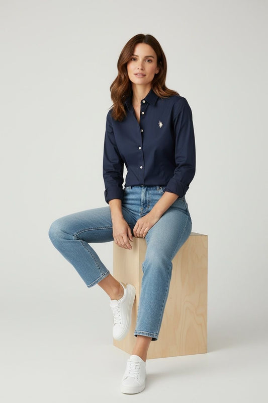 Blusa Us Polo manga larga azul navy classic fit