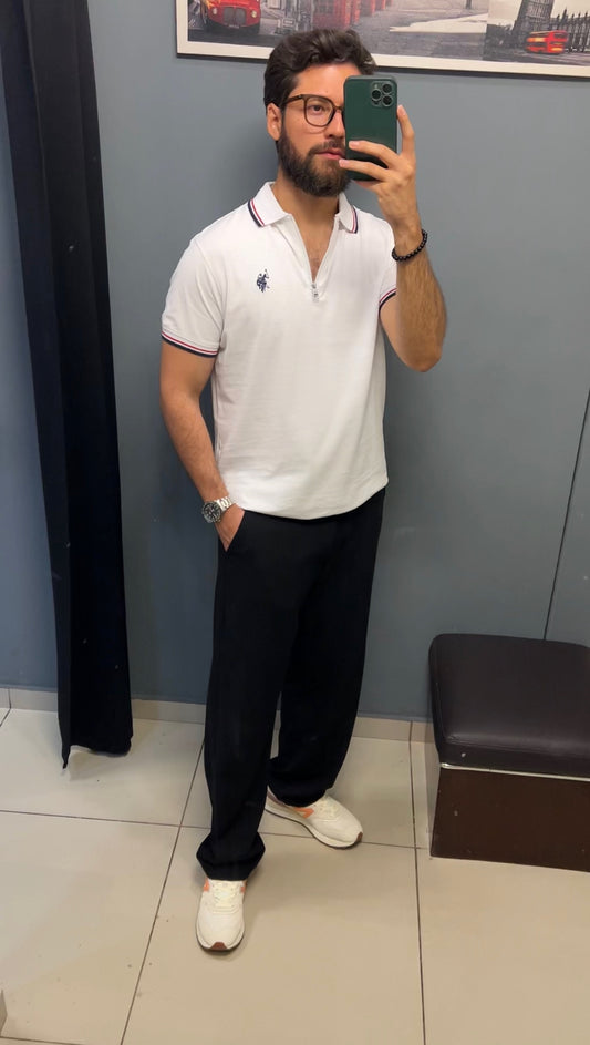 Us Polo Camisa Tipo polo ziper blanca franja delgada